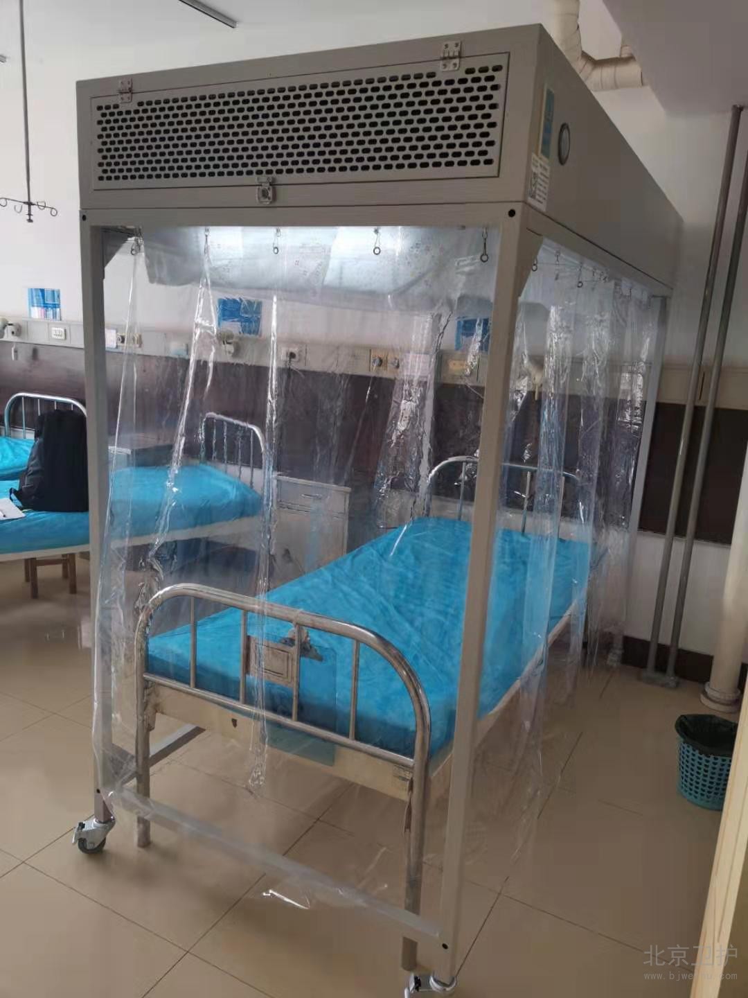 層流消毒床罩運用垂直層流的潔凈送風(fēng)形式,使罩內(nèi)空氣潔凈度達到百級的潔凈環(huán)境,同時罩內(nèi)區(qū)域維持微正壓,阻止外部污染空氣進入罩內(nèi),起到無菌隔離的作用。