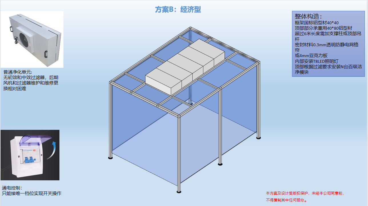 3.防靜電垂簾:四周圍用防靜電垂簾(或鋼化玻璃),防靜電效果好、透明度高、網(wǎng)格清晰、柔韌度好、不變形、不易老化;